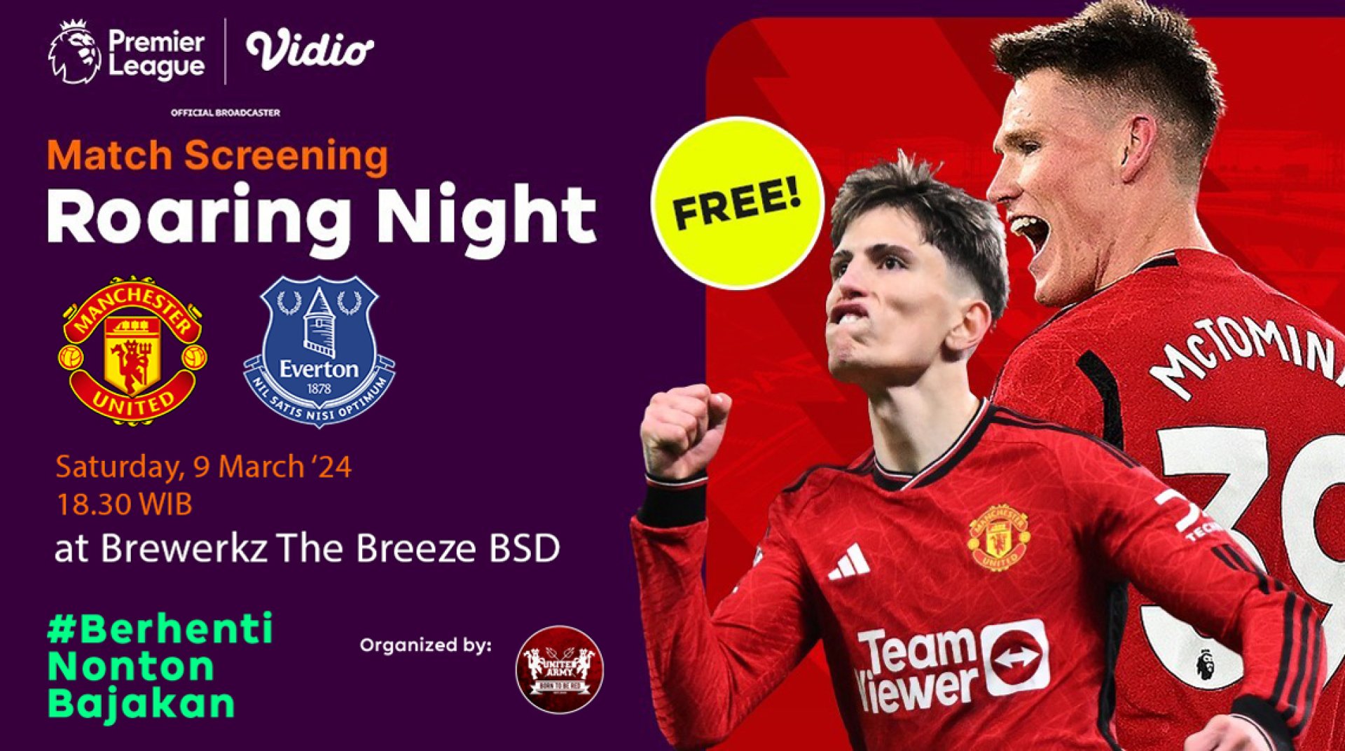 Vidio bersama Bola.com dan Bola.net berkolaborasi dengan United Army untuk menggelar nonton bareng (nobar) bertitel roaring night Liga Inggris 2023/2024 antara Man United vs Everton.